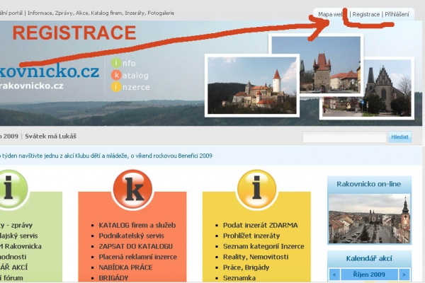 V pravém horním rohu portálu Rakovnicko.cz najdete Registrační formulář REGISTRACE. Po registraci na portálu Rakovnicko.cz se můžete ve stejném místě Přihlásit. Jako přihlášený uživatel si můžete vytvořit vlastní Fotogalerie s vlastními fotografiemi.