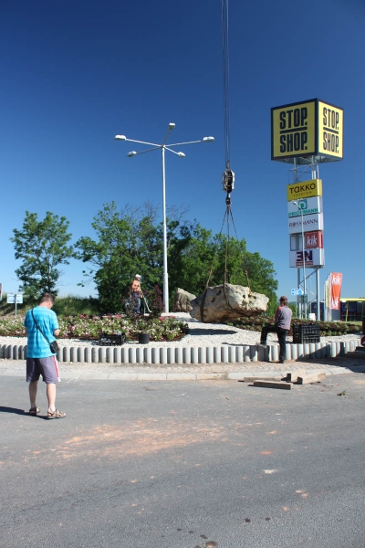 Kruhový objezd na Lišanské ulici směrem k Tescu doznal vizuální změny. Při jeho částečném uzavření v minulých dnech došlo odbornou firmou k rekonstrukci plochy kruhového objezdu, úpravě povrchu, usazení nových bezpečnostních prvků, kamenných oblázků, k výsadbě zeleně a keřů. Uprostřed kruhového objezdu byly jeřábem umístěny 4 velké kamenné bloky.